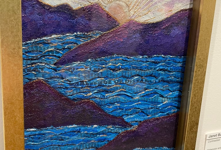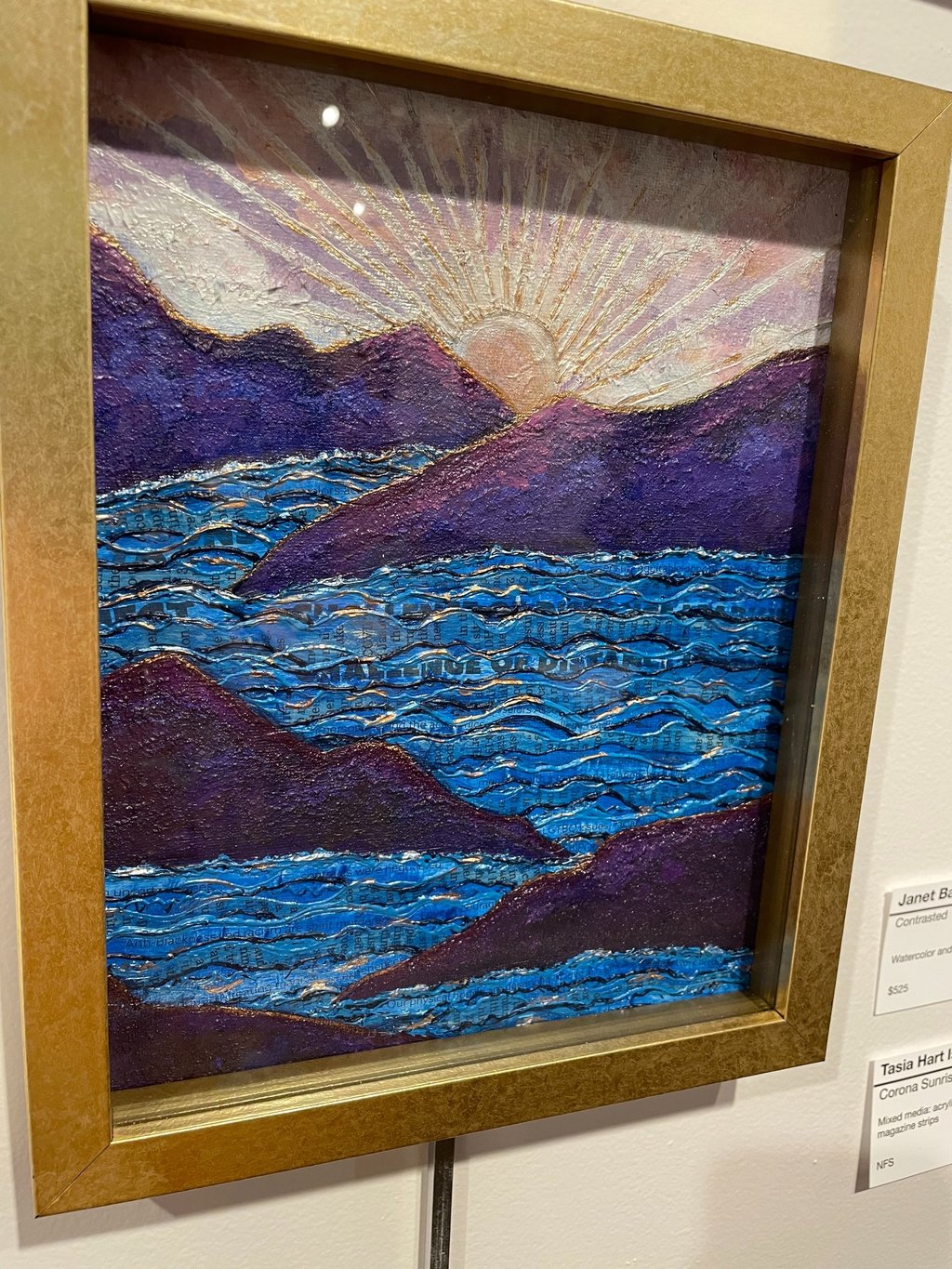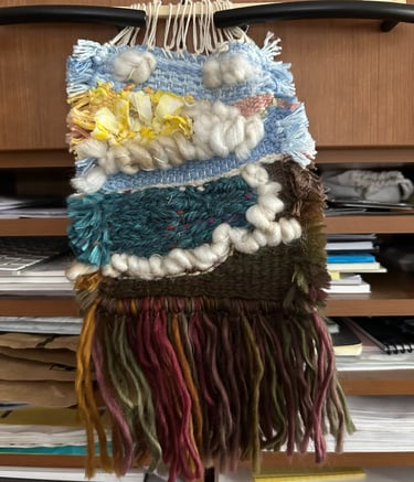 Mixed media pieces that combine various techniques for stunning visual impact and creativity. Tasia's mixed media work ranges in size from 2 x 3 inch "Artist Trading Cards" up to 20 x 20 inch canvas-based pieces. Fibers work include crochet items and embroidery by Zahra; and weaving, embroidery and fabric collage by Tasia.