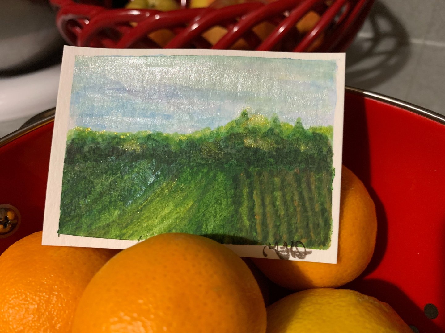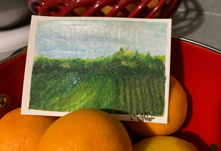 Bold acrylics on canvas, paper, or canvas board and vibrant watercolor on cotton paper. Abstraction, stylized natural elements, realistic florals and landscapes, and folk art motifs are all part of Tasia's artistic language. Paintings range in size from ATC (Artist Trading Card, 2 x 3 inch) to large format pieces beyond 24 x 24 inches.