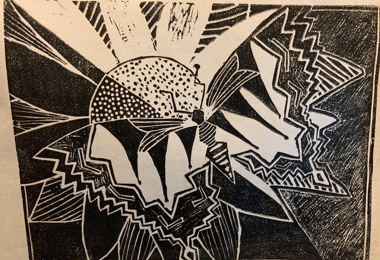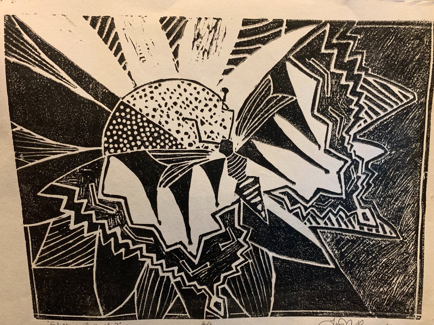 Printmaking from Halcyon Arts is created using hand carved block printing, monoprint, and collagraph techniques. Block printing is done on both paper and textiles for decorative and functional art. Prints are all originals and a limited run at this time.